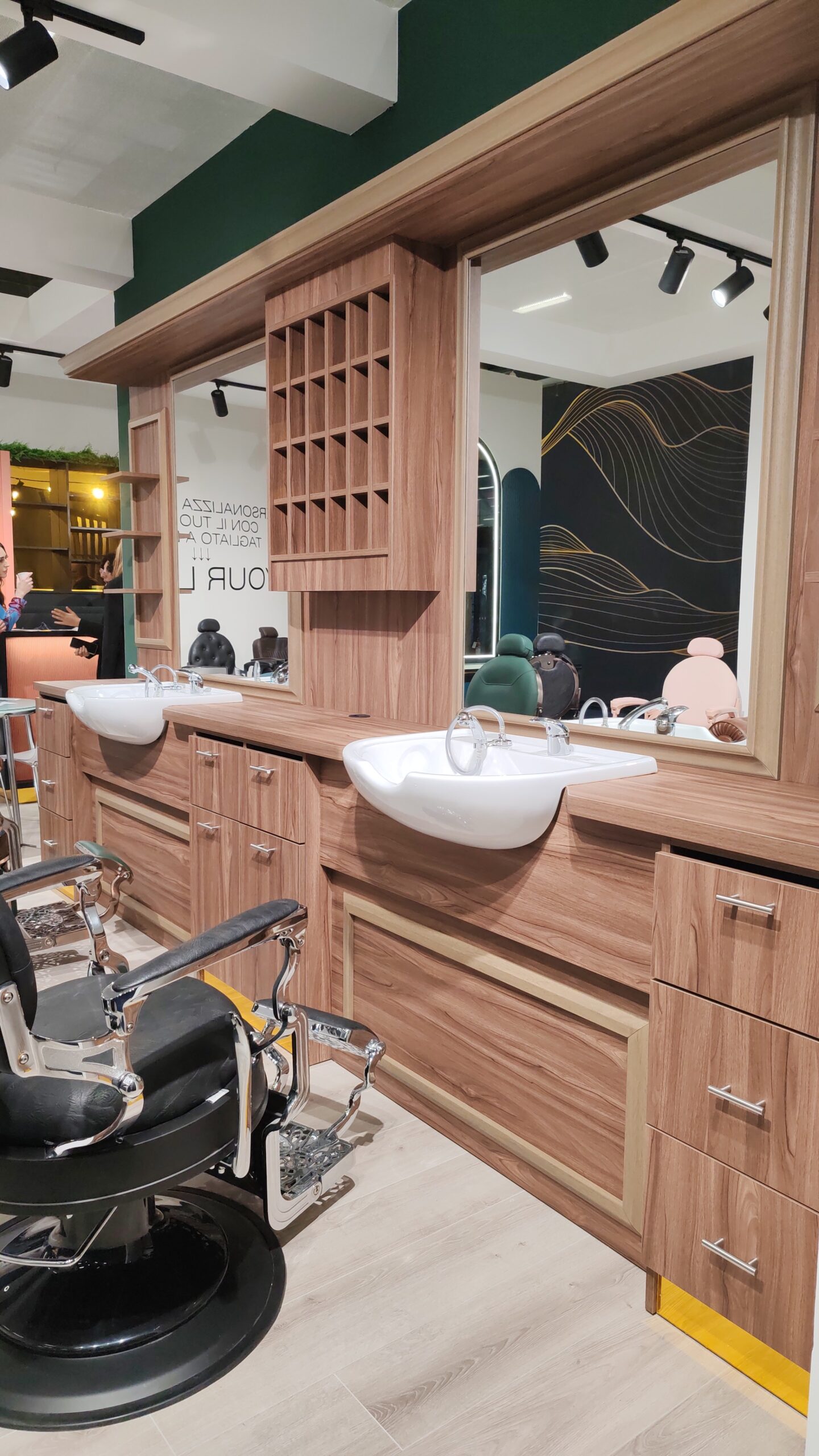 La postazione da barbiere è il luogo dove la tecnica diventa arte. Le nostre postazioni barber sono progettate per essere il fulcro operativo e stilistico del tuo shop, garantendo al professionista tutto lo spazio necessario per muoversi con precisione e al cliente la sensazione di trovarsi in un luogo unico.