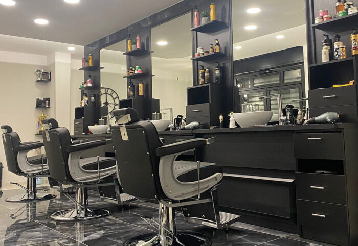 Quattro pannelli espositivi, dotati di tre mensole cadauno, più cubo dotato di vano per scalda-salviette ed un cassetto, posti sul laterale di ciascuna specchiera.
