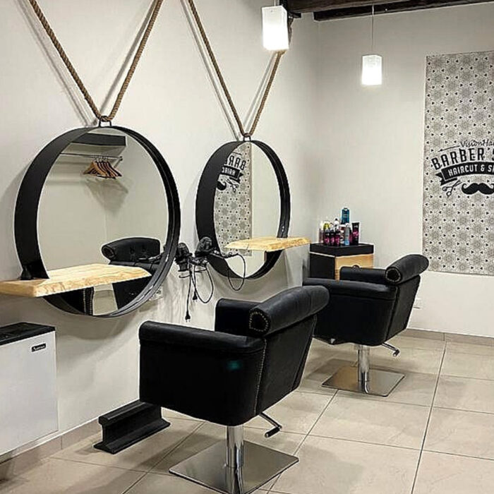Ferro e legno, i materiali di questa postazione che richiamano lo stile industrial più in voga del momento.